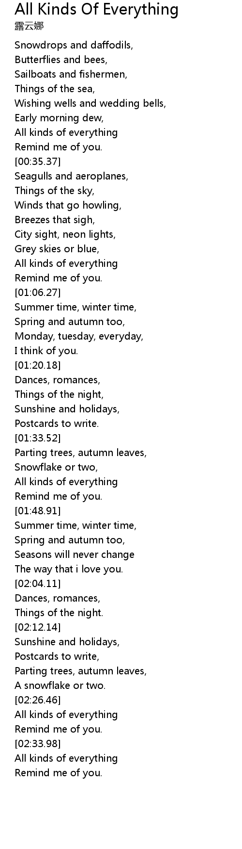 All Kinds Of Everything Lyrics Follow Lyrics